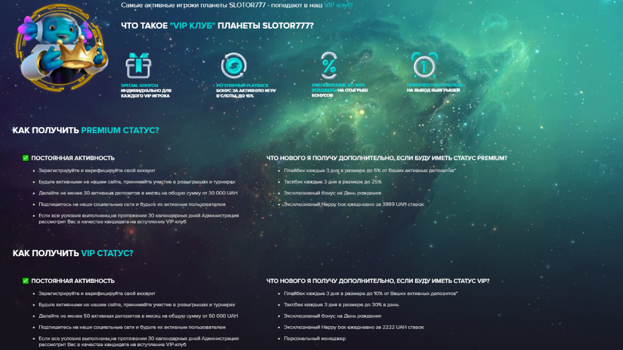 Slotor777 – це нове онлайн-казино, яке отримало ліцензію від українського регулятора КРАІЛ у 2023 році. Сайт казино має лаконічний дизайн, виконаний у космічному стилі. Тут представлено розділи з турнірами, акціями, бонусами та розіграшами, а також велика бібліотека ігрових автоматів, настільних ігор та ігор із живими дилерами. Основні правила роботи включають обов’язкову верифікацію користувачів і обмеження за віком – реєстрація можлива тільки з 21 року.